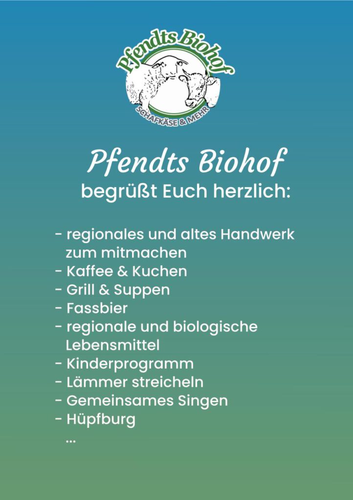 Schön, dass Sie einmal bei uns vorbeischauen! Seit 2004 wirtschaftet Pfendts Biohof in Pratau, einem kleinen Vorort der historischen Lutherstadt Wittenberg. Zurzeit haben wir ca. 100 Milchschafe, die im Sommer die Elbwiesen beweiden und deren Milch in der hofeigenen ökologischen Käserei verarbeitet wird. Bei uns sind außerdem drei Jersey-Milchkühe mit Kälbern, ein Hütehund, Katzen, Hühner, Gänse, Enten, Bienen und Ziervögel zu Hause.